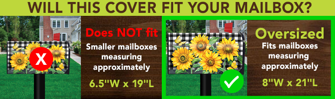Made to fit large, steel mailboxes measuring 8"W x 21"L. Our mailbox covers easily attach to steel mailboxes using magnetic strips on each side. Our original artwork printed on material designed for outdoor display provides unique designs that are as durable as they are beautiful! With designs for every holiday, theme, and season Briarwood Lane is sure to offer the perfect decorative accent! Each mailbox cover has optional punch-out holes and includes plastic straps for additional security against theft/extreme weather. Also includes 3 sets of adhesive numbers.
